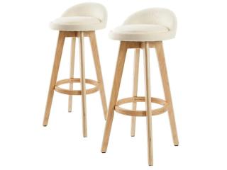Check with seller Stylish 2x Wood Bar Stool Dining Chair Fabric LEILA 72cm Beige – Sleek Seating Set