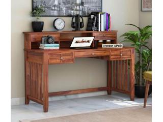 Maintain a tidy and efficient home office with the Wallace computer table. This elegant piece, featuring a warm honey finish, is designed for superior organization. It provides a spacious work surface for your computer and includes integrated drawers to neatly store all your essentials, from stationery to documents, keeping your workspace clutter-free. The robust construction ensures this computer table will be a durable part of your daily routine. To enhance your productivity with this perfectly balanced computer table, make your purchase exclusively from Wooden Street.